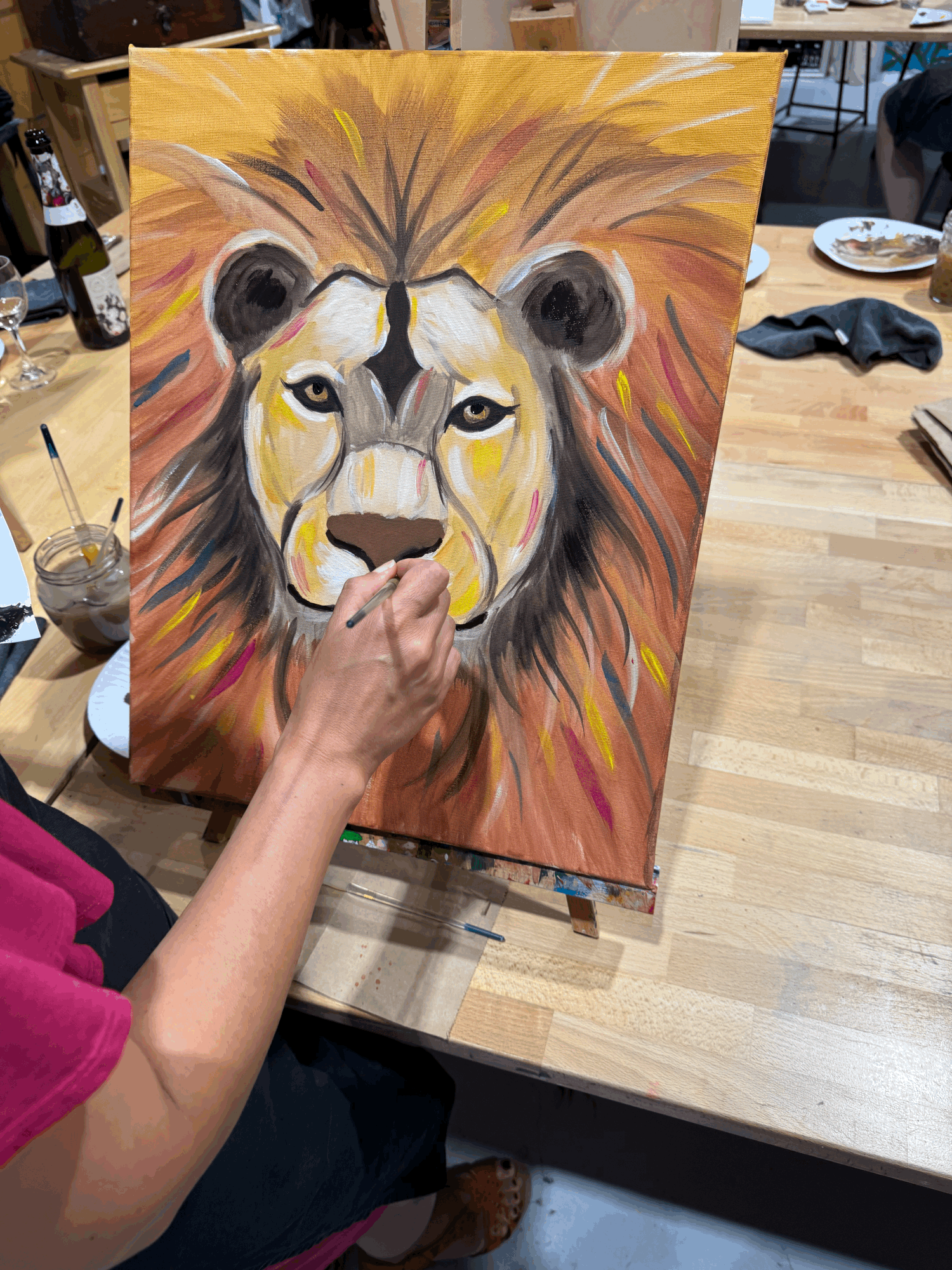 Our teacher starts with a blank canvas, and takes you through the painting step by step. ASLAN has an outline that you can follow.